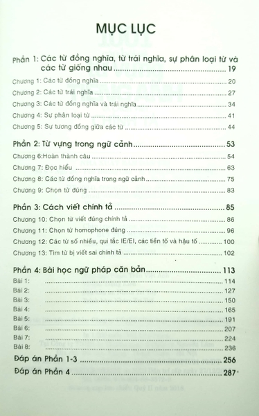 Quyển sách 1001 Câu Hỏi Về Từ Vựng Tiếng Anh Và Cách Viết Chính Tả được thiết kế để các bạn ôn tập và thực hành thành công từ vựng và cách viết chính tả. Với 1001 câu hỏi thực hành, bạn có thể làm phong phú khả năng nói nhanh và tập trung vào những lĩnh vực mà bạn cần phải cải thiện.