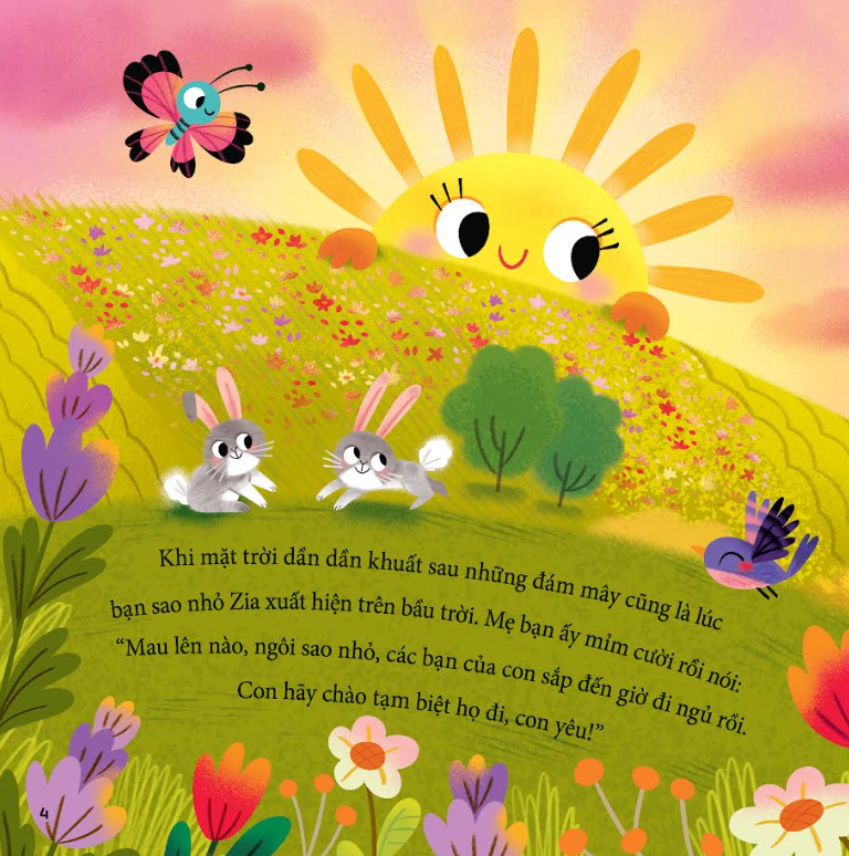 Khi hoàng hôn buông xuống và bầu trời khoác lên màu xanh ngọc thẫm, cũng là lúc bạn sao nhỏ Zia bắt đầu hành trình gửi lời chúc ngủ ngon đến bạn bè khắp muôn nơi. Từ những chú chim non ríu rít, nàng tiên cá duyên dáng đến những vì sao băng đang đua nhau tỏa sáng, mỗi cuộc gặp gỡ đều mang đến cho bé cảm giác thích thú và ngập tràn phép màu.