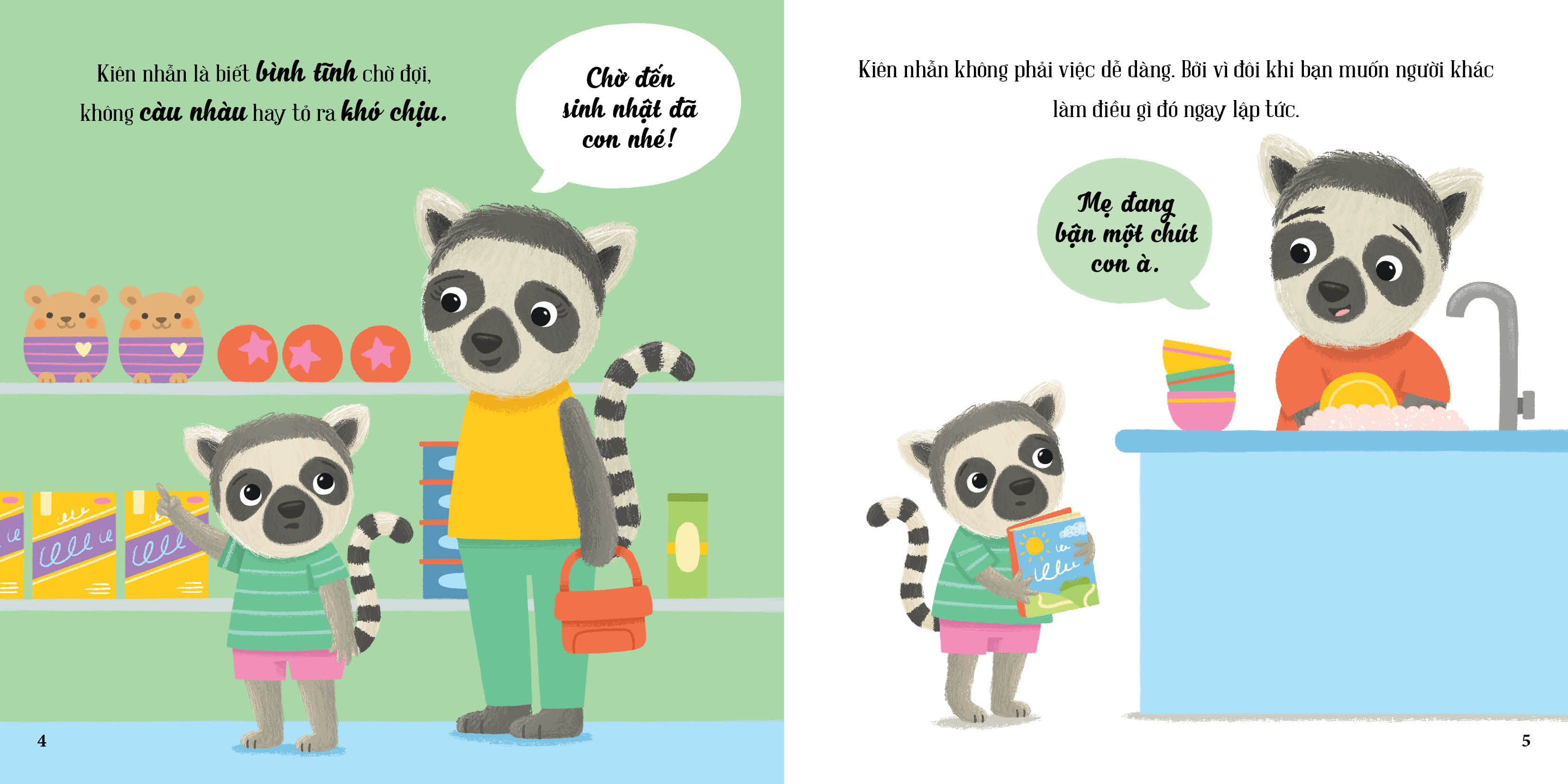 Kiên nhẫn là một trong những kỹ năng khó học nhất đối với trẻ nhỏ, bởi thế giới của các con luôn đầy rẫy những khao khát muốn được đáp ứng ngay lập tức. Trong cuốn sách này, hành trình của bạn Vượn Cáo sẽ giúp bé hiểu rằng: Biết chờ đợi và giữ bình tĩnh không chỉ là một đức tính đẹp, mà còn là chìa khóa để con cảm thấy nhẹ nhàng và làm mọi việc tốt hơn.