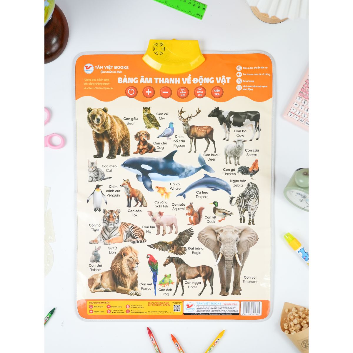 Bảng âm thanh của Tân Việt Books là một sản phẩm giáo dục bổ ích, đáp ứng đầy đủ tiêu chí vừa học vừa chơi cho trẻ. Với độ tuổi khuyến học từ 1+, các bậc phụ huynh có thể yên tâm vừa cùng con vui học, vừa vun đắp trong con tình yêu với con chữ, động vật… đồng thời củng cố thêm cho con trẻ vốn kiến thức về cuộc sống hằng ngày.