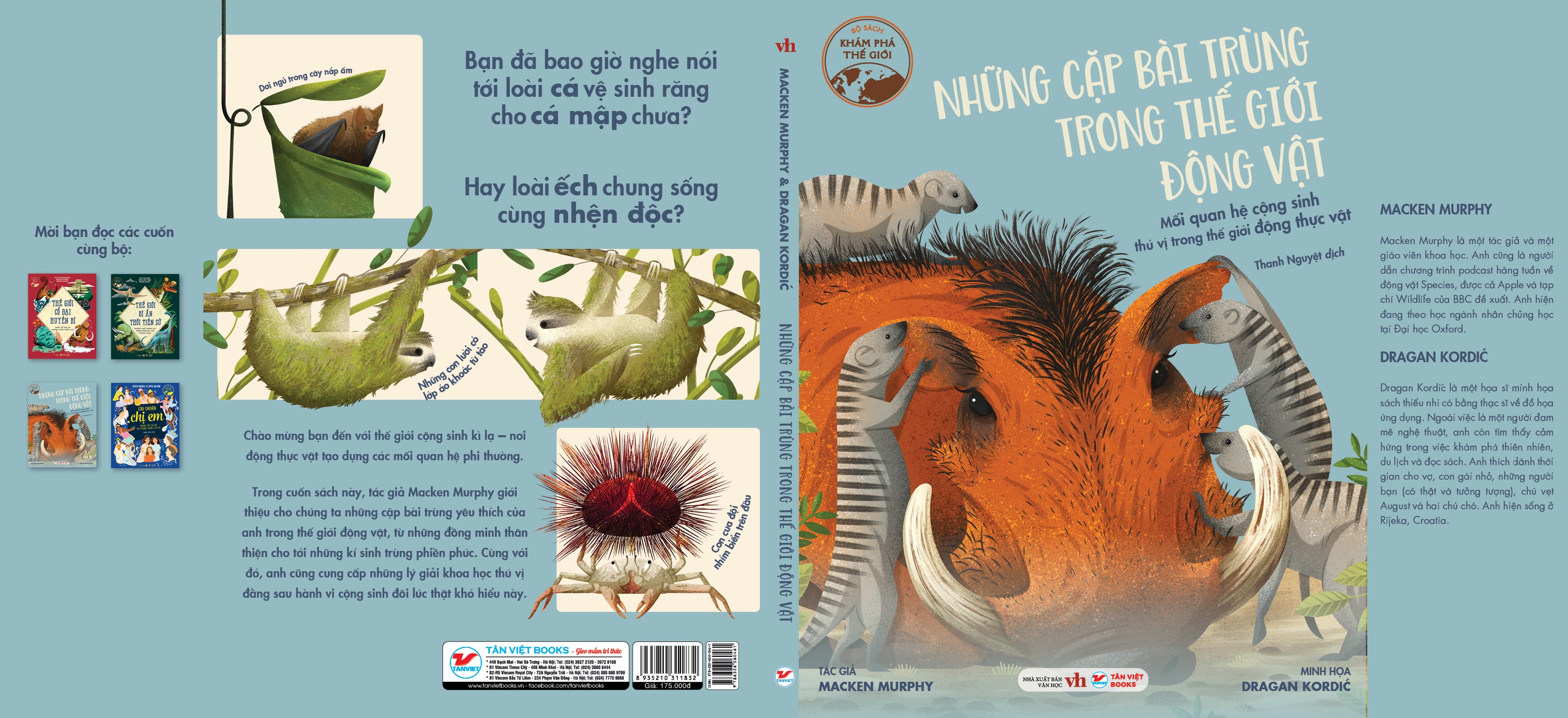 Trong cuốn sách Những cặp bài trùng trong thế giới động vật – Mối quan hệ cộng sinh thú vị trong thế giới động thực vật, tác giả Macken Murphy giới thiệu cho chúng ta những cặp bài trùng yêu thích của anh trong thế giới động vật, từ những đồng minh thân thiện cho tới những kí sinh trùng phiến phức. Cùng với đó, anh cũng cung cấp những lý giải khoa học thú vị đằng sau hành vi cộng sinh đôi lúc thật khó hiểu này. Đồng hành cùng anh trong cuốn sách này là họa sĩ minh họa Dragan Kordić, người đã khéo léo tái hiện những mối quan hệ khiến người ta phải đau đầu trong tự nhiên, bao gồm: