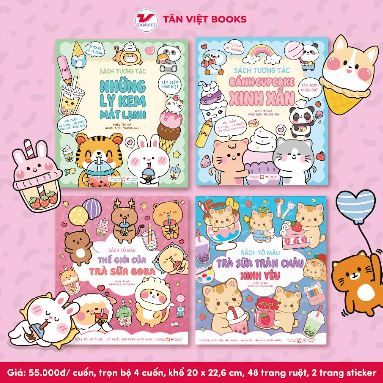 Lấy cảm hứng từ niềm yêu thích trà sữa này, Tân Việt Books trân trọng giới thiệu tới  bộ Sách tô màu và tương tác Trà sữa Boba. Có thể nói đây vừa là chủ đề gần gũi nhưng cũng đầy những điều mới mẻ, sáng tạo, giúp phát triển nhiều kĩ năng quan trọng cho trẻ thông qua các trò chơi tương tác và hoạt động tô màu.