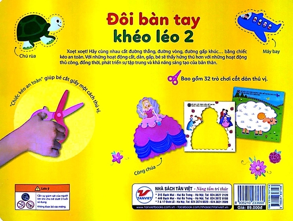 Xoẹt, xoẹt! Hãy cùng nhau cắt đường thẳng, đường vòng, đường gấp khúc…bằng chiếc kéo an toàn. Với những hoạt động cắt, dán, gấp, bé sẽ thấy hứng thú hơn với những hoạt động thủ công, đồng thời, phát triển sự tập trung và khả năng sáng tạo của bản thân. Sau khi hoàn thành 32 món đồ chơi thú vị, bé sẽ phát triển được khả năng kết hợp giữa tay và mắt, sức tập trung và khả năng sáng tạo.
