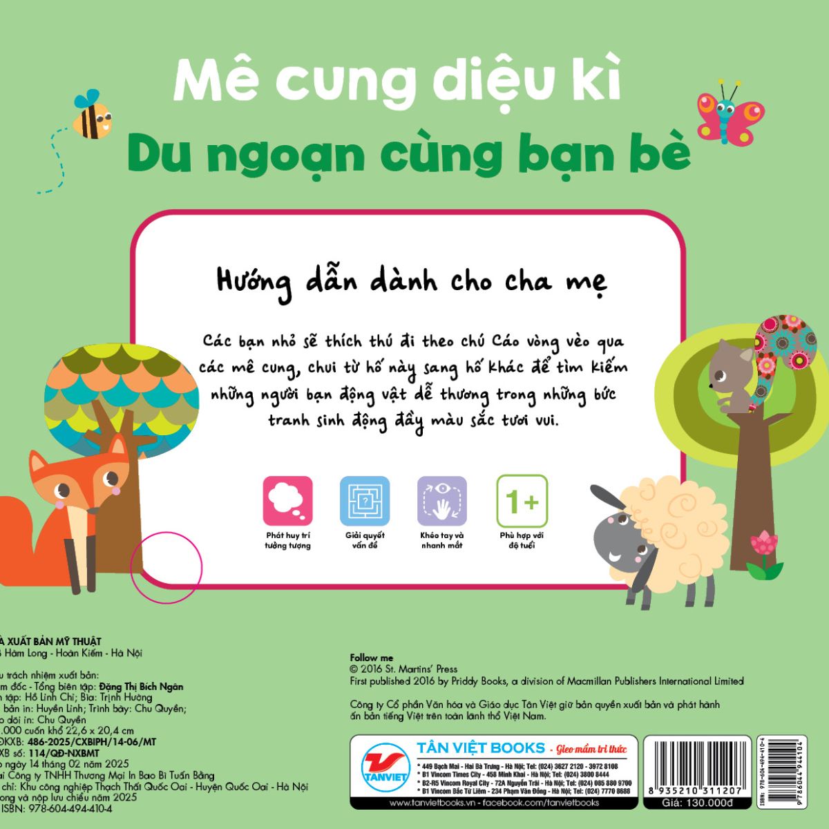 Trong cuốn Du Ngoạn Cùng Bạn Bè, bé sẽ đồng hành cùng Cáo nhỏ trên hành trình phiêu lưu kỳ thú qua những mê cung rực rỡ:
