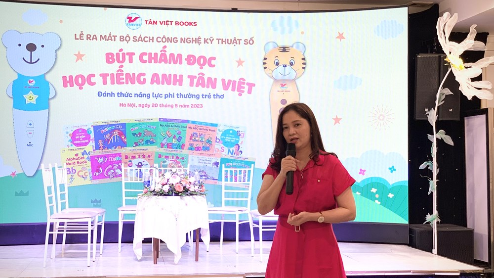 Chia sẻ tại buổi ra mắt bộ “Bút chấm đọc - Học tiếng Anh” ngày 20/5, bà Nguyễn Kim Thoa - CEO - Người sáng lập hệ thống Nhà sách Tân Việt cho biết: Sau nhiều năm tìm hiểu các phương pháp nuôi dạy con, tôi nghiệm ra rằng, một trong những tác động hữu hiệu nhất đến não bộ của trẻ chính là âm thanh, ngôn ngữ và hình ảnh.