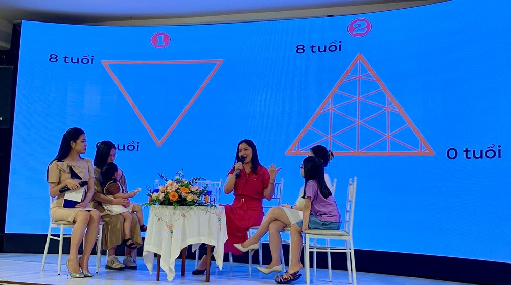 Bà Nguyễn Kim Thoa - CEO - Người sáng lập hệ thống Nhà sách Tân Việt chia sẻ về hoạt động của não bộ của trẻ những năm đầu đời.