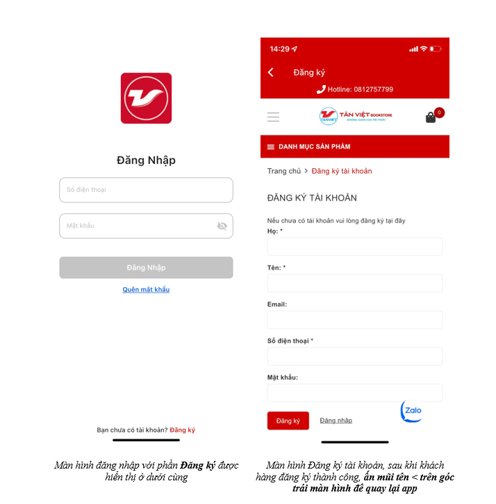 Bước 1: Tải và đăng nhập app Sách Tân Việt trên App Store (iOS) hoặc CH Play (Android):