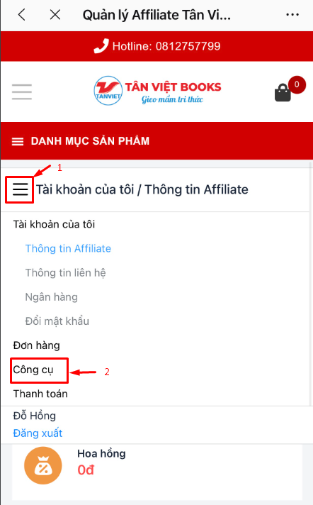 Trước tiên bạn phải đăng nhập tài khoản cộng tác viên bằng cách click vào link sau: