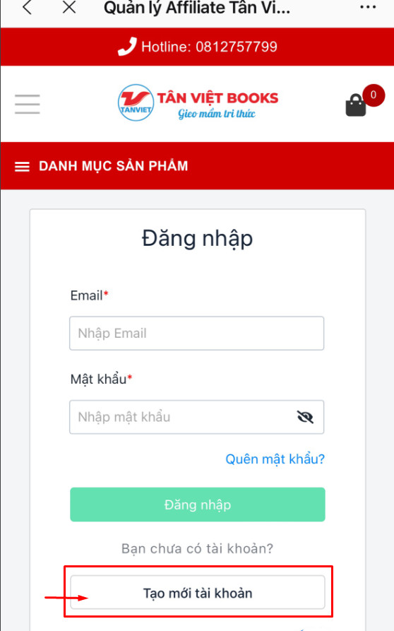 *Trong trường hợp chưa có tài khoản cộng tác viên, bạn vui lòng click vào button "Tạo mới tài khoản"