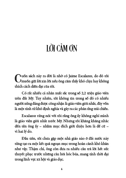 Cuốn sách được viết vào năm 1988, kể về những năm đầu đời thầy Escalante cống hiến với nghề giáo. Thế nhưng sự cống hiến không dừng lại ở đó, thầy vẫn tiếp tục hành trình truyền lửa cho học trò. Hơn 30 năm đứng trên bục giảng, Escalante giữ vững phương pháp giáo dục này và bằng lòng yêu thương tràn đầy, ông đã đào tạo hơn 400 học sinh ưu tú đỗ vào những trường đại học nổi tiếng thế giới như Harvard, MIT, Stanford...