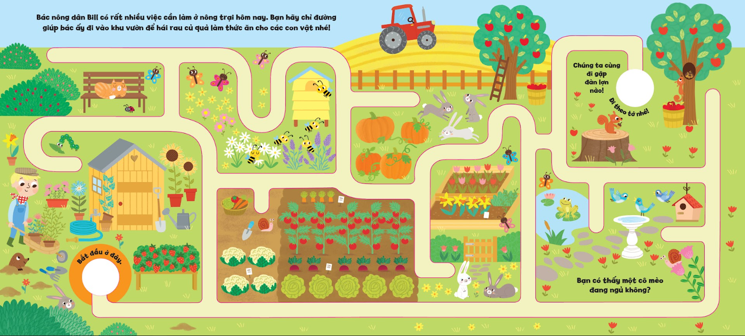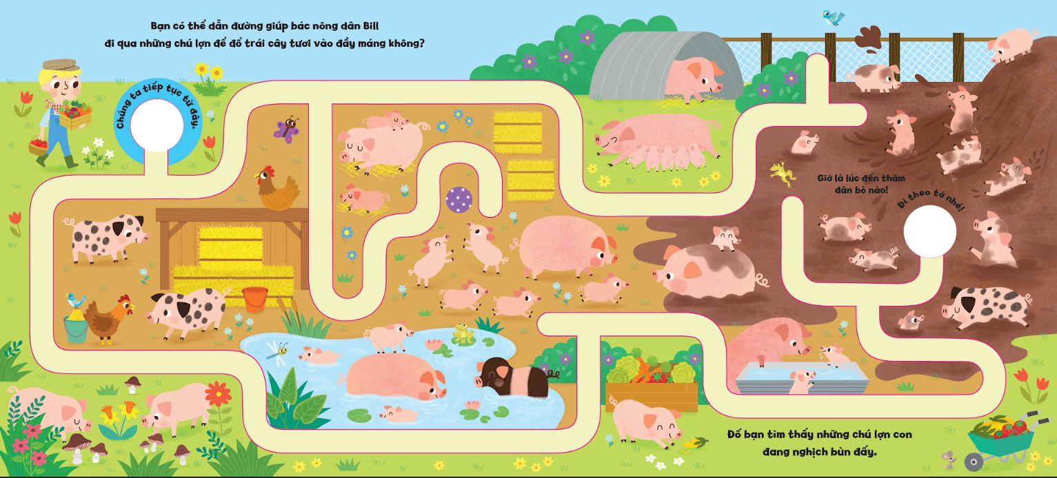 Cuốn sách này giới thiệu với bé những người bạn động vật thân thiện, mang đến trò chơi tìm kiếm thú vị và rèn luyện ngón tay khéo léo đi theo chỉ dẫn trên mỗi trang giấy. Bé sẽ rất thích thú với cuộc phiêu lưu trong trang trại màu sắc này đấy! Chúng mình cùng tham gia hành trình khám phá nông trại đầy vui nhộn nhé!