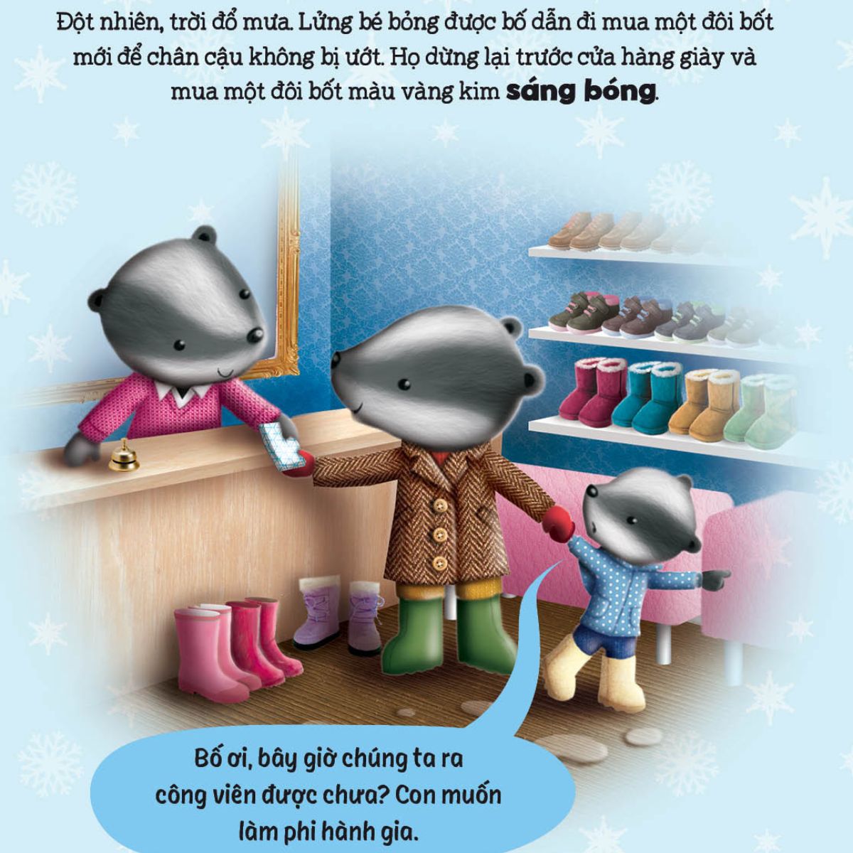 Trong thế giới mùa đông đầy sắc trắng ấy, bé sẽ gặp gỡ Lửng Con, Nhím Bé Bỏng, Cánh Cụt Con, Sóc Chuột, Gấu Mèo và nhiều người bạn nhỏ khác.