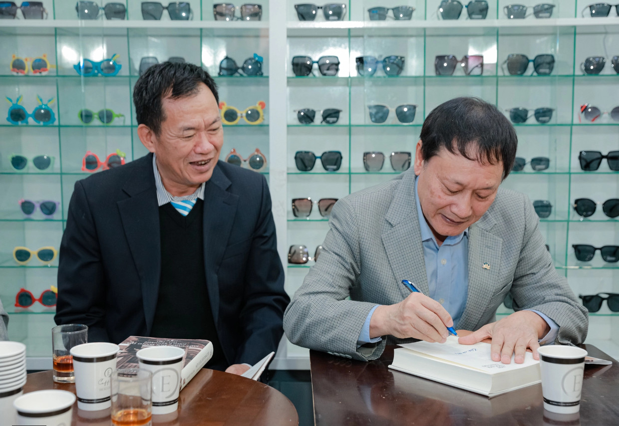 Ông Nguyễn Sỹ Hưng ký tặng sách cho độc giả.