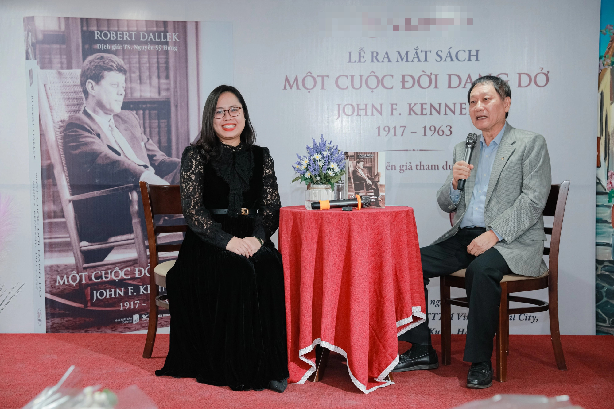 TS Nguyễn Sỹ Hưng trò chuyện cùng bà Nguyễn Thu Trang về cuốn sách "Một cuộc đời dang dở: John F. Kennedy, 1917-1963".